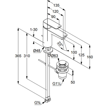 Смеситель для раковины KLUDI PURE&STYLE 100 однорычажный, c донным клапаном, черный матовый (402903975)