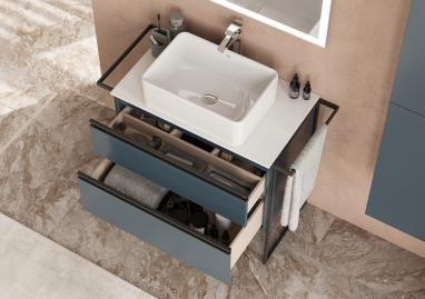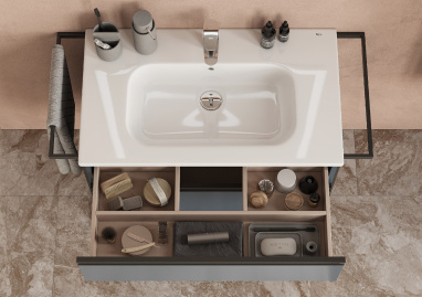 Тумба под раковину Roca DOMI 800 мм, подвесная, 2 ящика, синий матовый (Z.RU93.0.786.8)