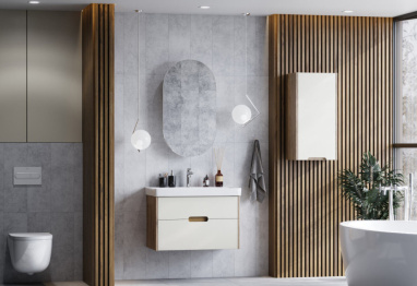 Тумба под раковину AQUATON Оливия 80 Бежевый/Дуб веллингтон (1A283101OLVG0)