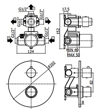 Смеситель для душа Paffoni LIGHT термостат, встраиваемый, 3 выхода, черный матовый (LIQ019NO)