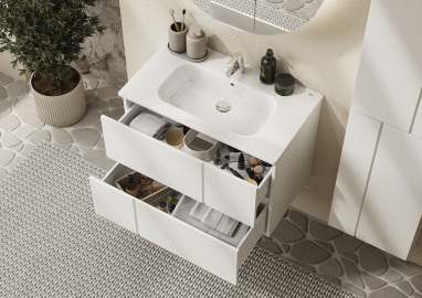 Тумба под раковину Roca Luna 80, подвесная, 2 ящика, белый матовый (Z.RU93.0.776.5)
