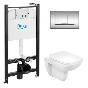 ПЭК Roca Debba Rimless: Инсталляция с подвесным унитазом, быстросъемное сиденье микролифт + Кнопка смыва Roca ACTIVE PL 32B, хром глянец (Z.RU93.0.773.4)