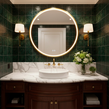 Зеркало Azario Димион D700, круглое, с подсветкой и диммером, 3 режима, сенсорный выключатель, с подогревом, золото матовое (АZ-LED011025)