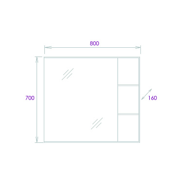 Внутреннее пространство пенала поделено полками на 4 секции, что позволяет разместить косметические различные косметические средства. Дверь снабжена механизмом плавного закрывания.